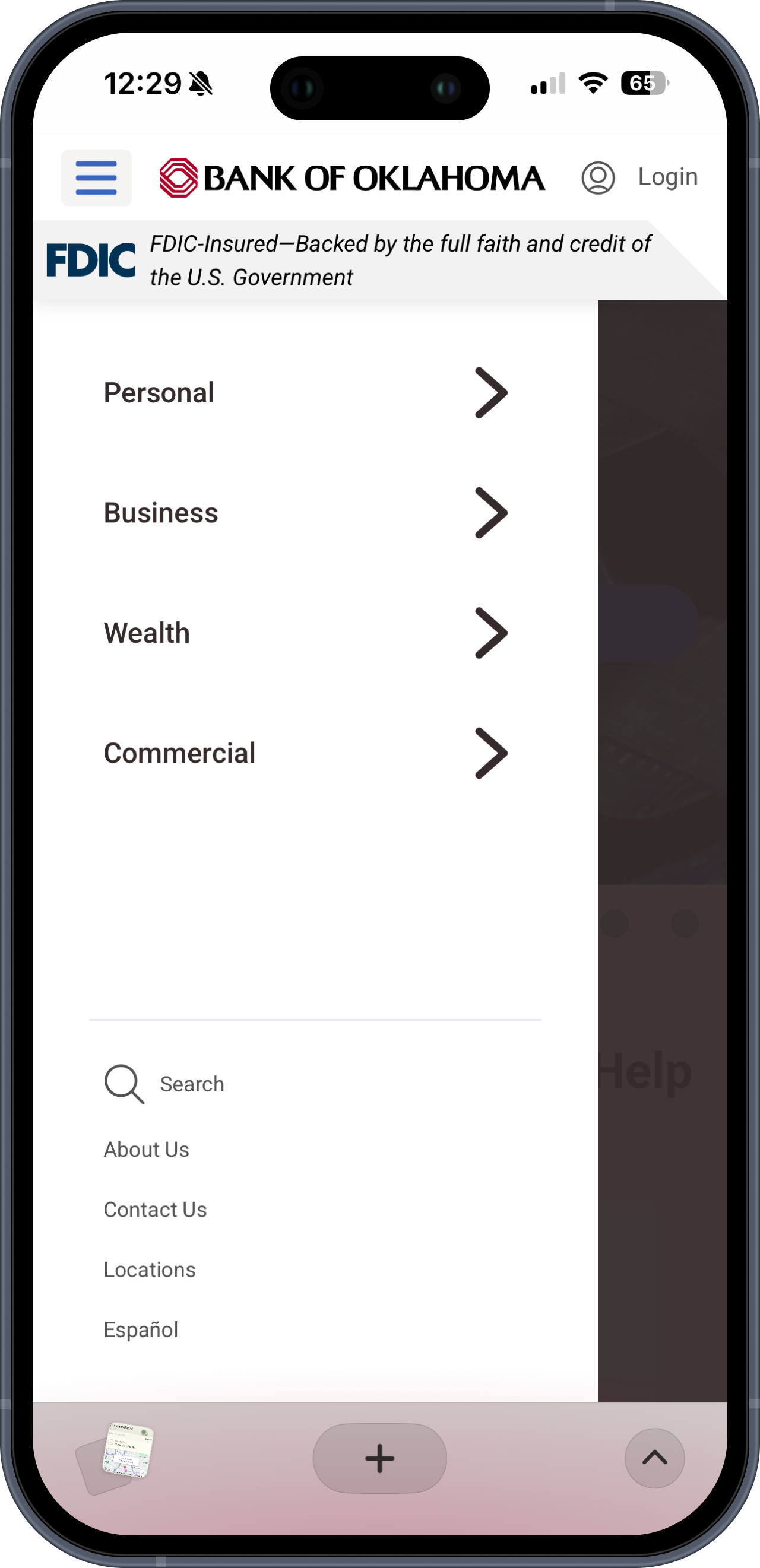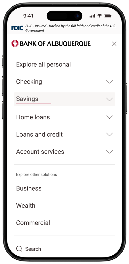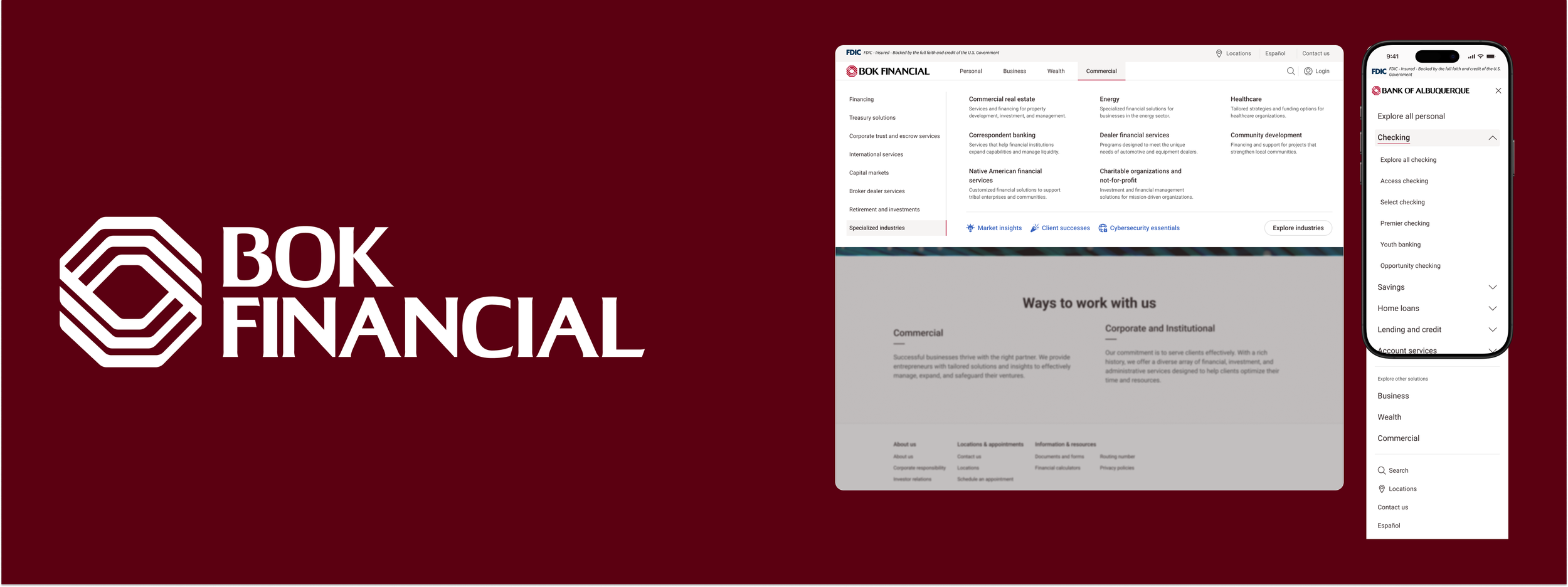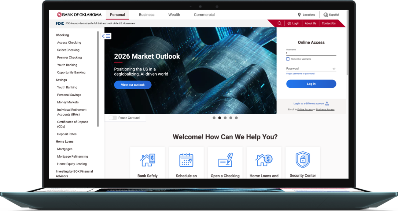 Modernize BOK Financial marketing navigation by shifting away from the left-hand drawer to a horizontal overlay that improves usability and reduces friction across key user journeys.