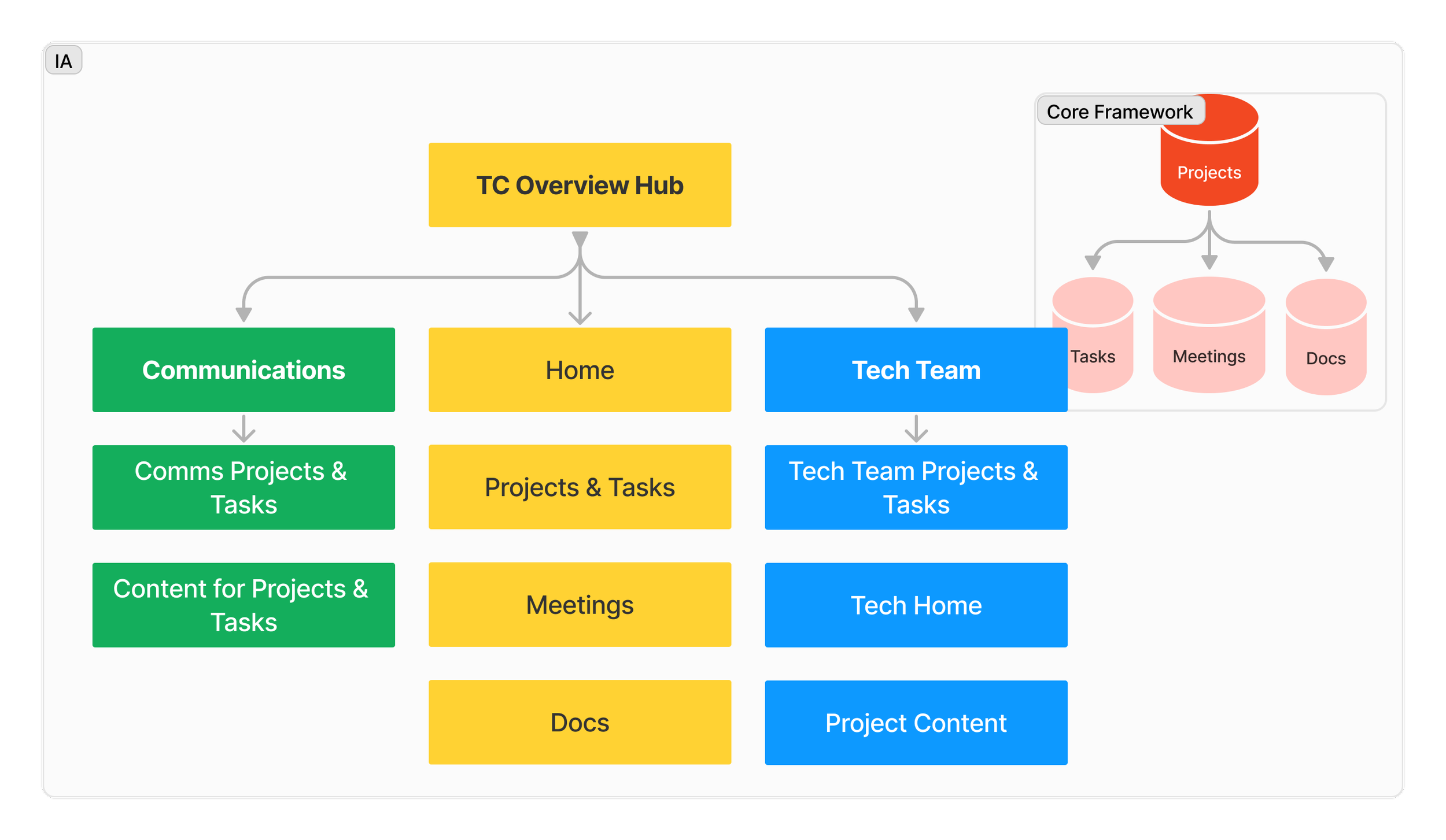 Information architecture used to balance user-centric design with a core framework, aligning with the technical system needs. It categorized pages, user groups, and essential information across the organization.